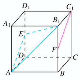 1.如图, 在棱长为 1 的正方体 A B C D-A_{1} B_{1} C_{1} D_{1} 中, E 为线段 D D_{1} 的中点, F 为线段 B B_{1} \\的中点.~~~~~~~~~~~~~~~~~~~~~~~~~~~~~~~~~~~~~~~~~~~~~~~~~~~~~~~~~~~~~~~~~~~~~~~~~~~~~~~~~~~~~~~~~~~~~~~~~~~~~~~~~~~~~~~~~~~~~~~~~~~~~~~~~~~~~~~\\