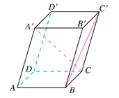 2. 如图, 在平行六面体 A B C D-A^{\prime} B^{\prime} C^{\prime} D^{\prime} 中, A B=2, A D=2, A A^{\prime}=3, \angle B A D=~~~~~~~~\\\angle B A A^{\prime}= \angle D A A^{\prime}=60^{\circ} . 求 (1)求 B C^{\prime} 与 C A^{\prime} 的长;(2) B C^{\prime} 与 C A^{\prime} 的夹角.~~~~~~~~~~~~~~~~~~~~~~~~~~~