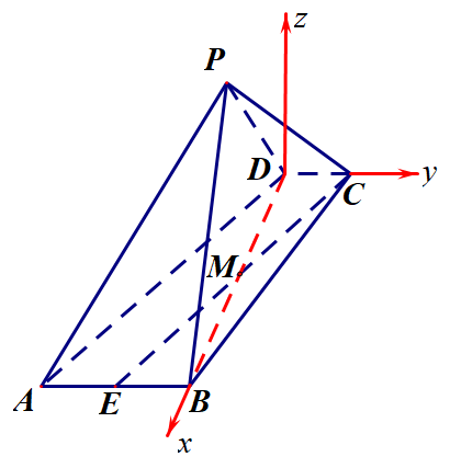 可得 \vec{m}=(0, \lambda, 2(\lambda-1))},~~~~~~~~~~~~~~~~~~~~~~~~~~~~~~~~~~~~~~~~~~~~~~~~~~~~~~~~~~~~~~~~~~~~~~~~~~~~~~~~\\同理可得 \vec{n}=(\sqrt{3},-1,-1) ,设平面 A B E 与平面 P D C 的夹角为 \theta , ~~~~~~~~~~~~~~~~~~~~~~~~~~~~~~~~~