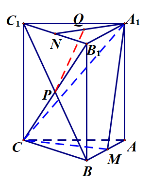 6.如图, 在直三棱柱 A B C-A_{1} B_{1} C_{1} 中, \angle B A C=90^{\circ}, A B=A C=2 , A A_{1}=3 . M 是 A B\\ 的中点, N 是 B_{1} C_{1} 的中点, P 是 B C_{1} 与 B_{1} C 的交点. 在线段 A_{1} N 上是否存在点 Q , 使得 ~~~~~~~ \\P Q / / 平面 A_{1} C M ?~~~~~~~~~~~~~~~~~~~~~~~~~~~~~~~~~~~~~~~~~~~~~~~~~~~~~~~~~~~~~~~~~~~~~~~~~~~~~~~~~~~~~~~~~~~~~~~~~~~~~~~~~~~~~~~~~~~~~