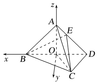 方法二、建系如图, B(1,0,0), D(-1,0,0), C\left(-\frac{1}{2}, \frac{\sqrt{3}}{2}, 0\right) . 设 A(0 , 0, a), a>0, ~~~~~~~~~\\E\left(-\frac{1}{3}, 0, \frac{2 a}{3}\right) .